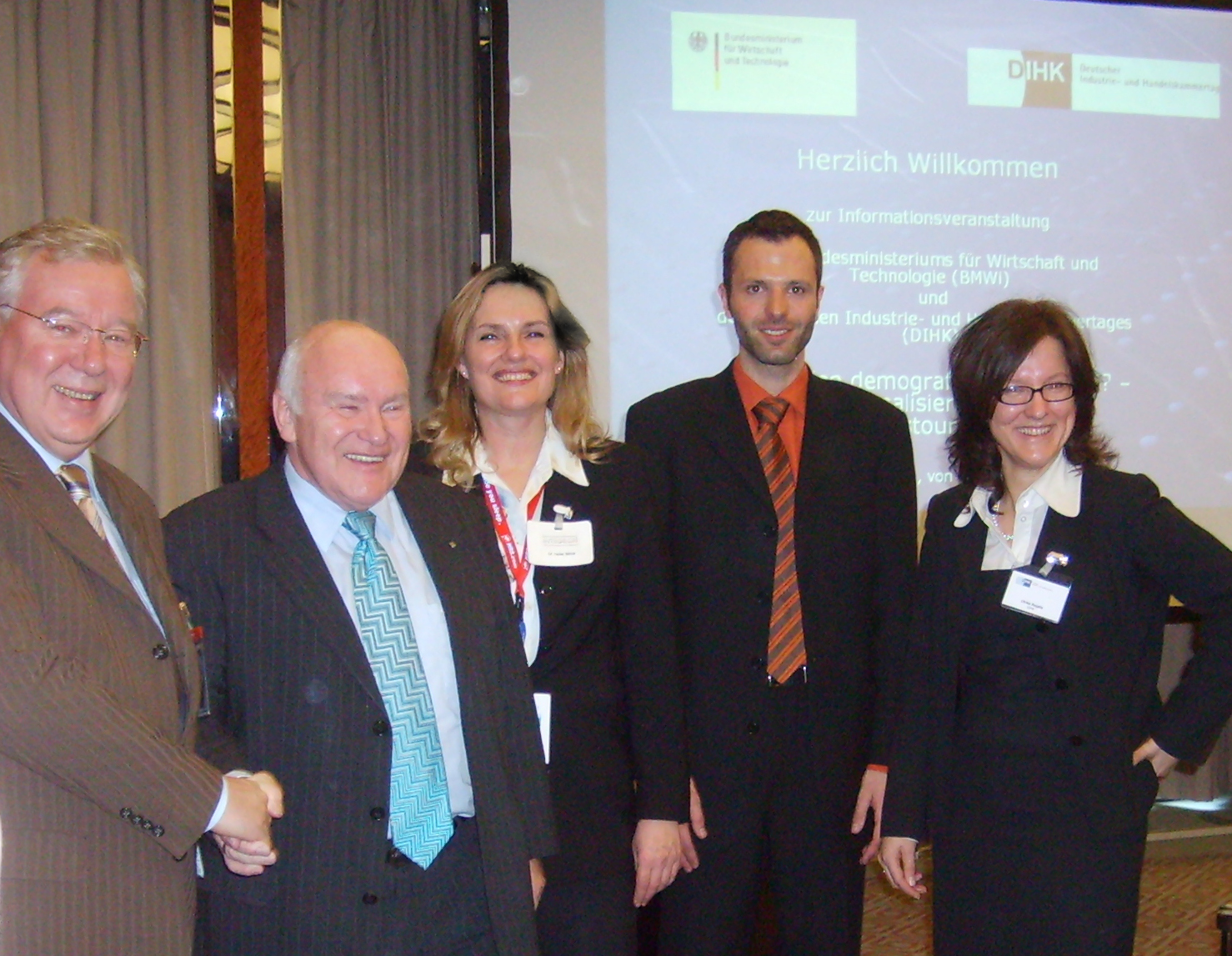 Sie sehen von links nach rechts: Peter Schulze (Kurgeschäftsführer Bad Zwischenahn), den 2007 amtierenden Tourismusbeauftragten der Bundesregierung Ernst Hinsken MdB, Prof. Dr. Heike Bähre (iNTEGRON-Institut), Jan Jähnke (Erlebnisbahn, Brandenburg) und Dr. Ulrike Regele (Referentin, DIHK).